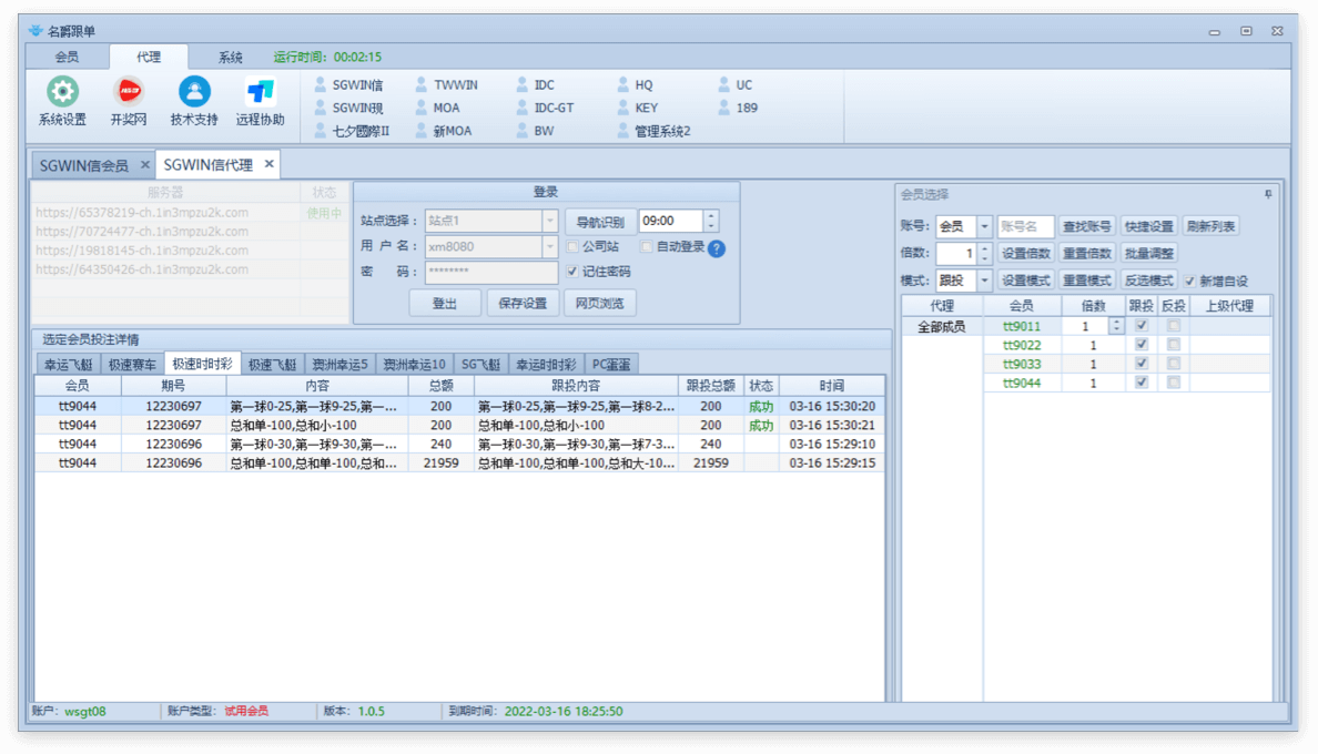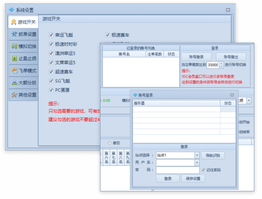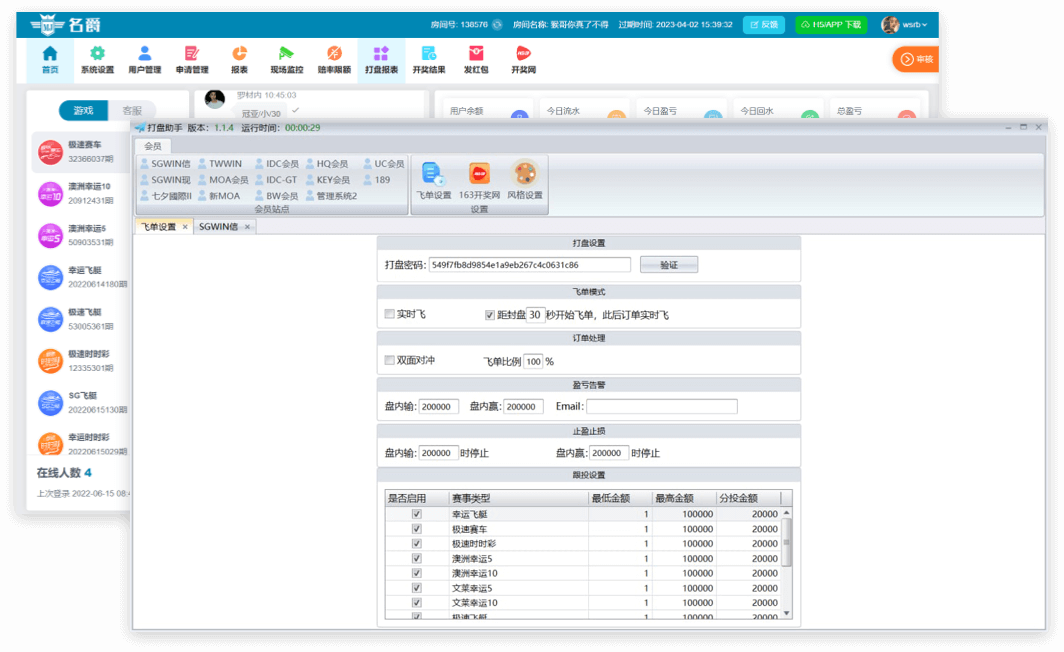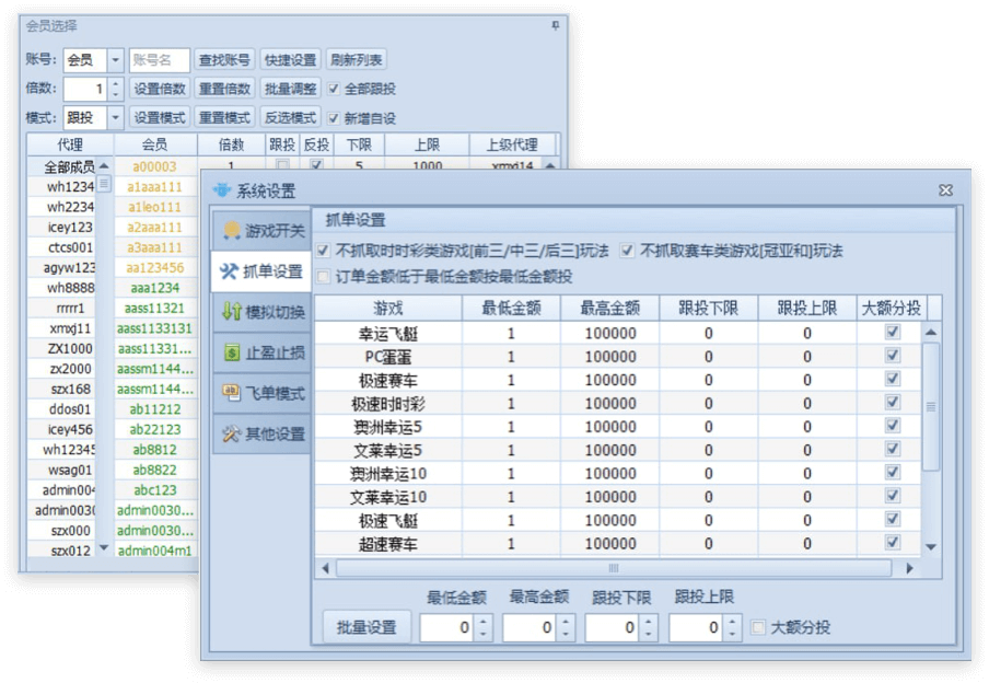 支持按代理层级显示会员,账号归属一目了然,设置更方便更快捷;支持会员一键跟,可设置最少0.1注,跟//上限/下限独立设置;支持独立开启需要跟的游戏,体验更佳,更稳定更快速;支持止止邮件告警,让你无需时刻守候,止止任你掌控;支持大额,玩法过滤,安全无忧,你想怎么玩就怎么玩。